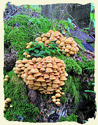 Sofern Frost und Schnee nicht schon vom kommenden Winter künden, können wir mit einigem Glück noch ein paar Pilze finden, welche geeignet sind vom Kenner nach Hause getragen zu werden. An Laubholzstubben wachsen, neben zahlreichen anderen ungenießbaren Holzbewohnern, die letzten Exemplare des schmackhaften Stockschwämmchens. Mit einiger Geduld können diese auch im heimischen Garten auf Buchenholz recht leicht selbst gezüchtet werden.