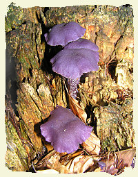 Daneben bietet das jetzt reichlich vorkommende Fallaub einigen Pilzarten recht gute Wachstumsmöglichkeiten. Hier fallen uns die durch ihre amethystblaue Färbung gut sichtbaren gesellig wachsenden Violetten Lacktrichterlinge ins Auge. Wenn sie auch wenig appetitlich aussehen, so sind sie aber durchaus als Mischpilze oder gut getrocknet als Würzpilze verwertbar. Ebenfalls geeignet, als Zutat im Mischpilzgericht, kann die nicht allzu häufig vorkommende Herbstlorchel zu einer Pilzmahlzeit beitragen.