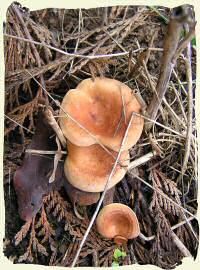 ![]() Fuchsiger Trichterling Lepista flaccida bedingt essbar, nur scharf gebraten, wird nicht von jedem vertragen |
